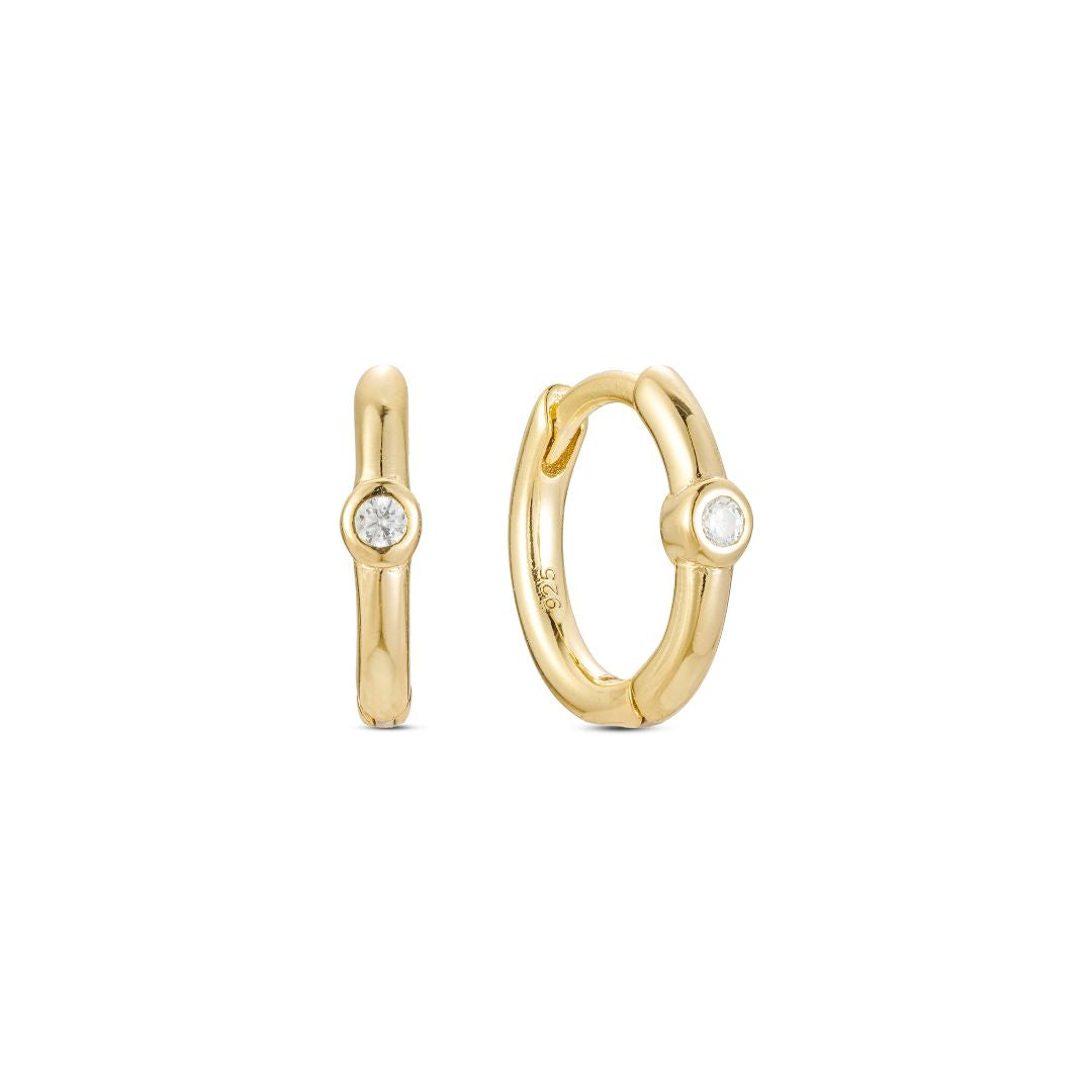 PRE-ORDER - Biseau Solitaire Huggie Hoop - Gold