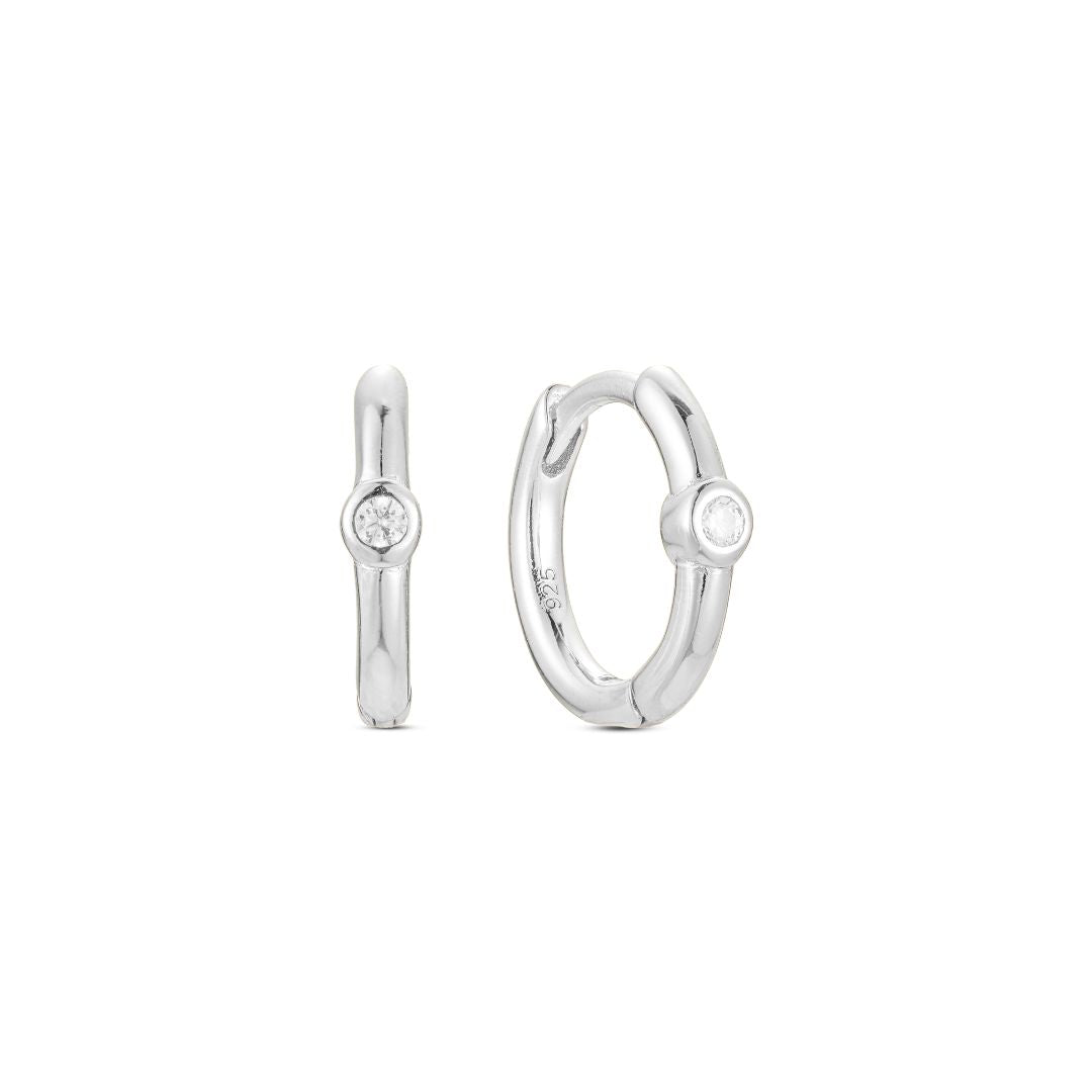 PRE-ORDER - Biseau Solitaire Huggie Hoop - Silver