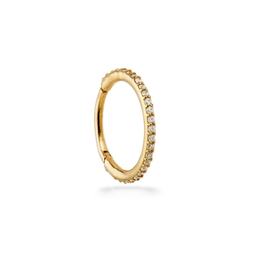 Rizo large 9k solid yellow gold pavé eternity hinge earring for conch - Helix & Conch