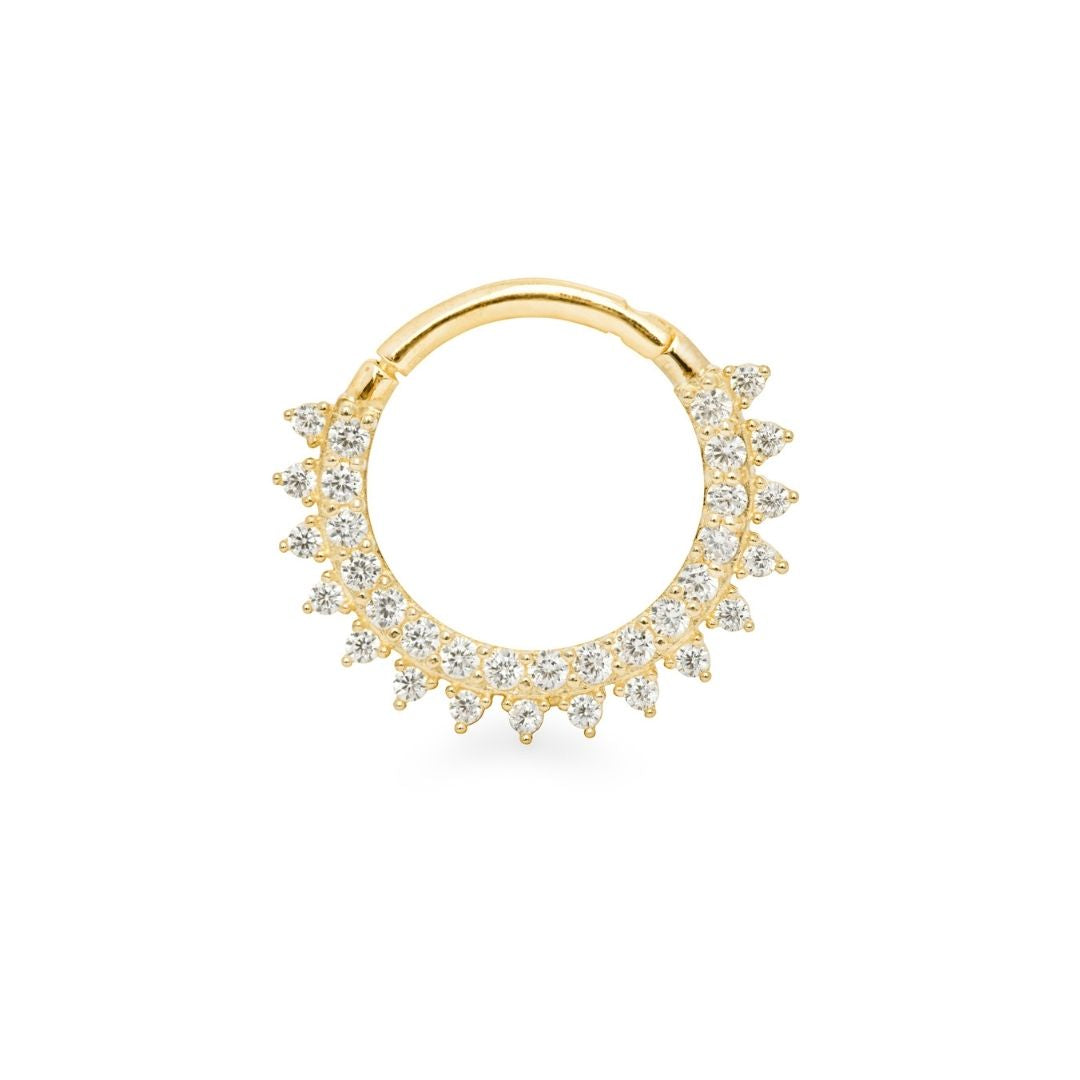 Ora 9k solid yellow gold double pavé jewelled hinged single Daith earring - Helix & Conch