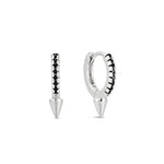 Noir white gold and black stone spike huggie hoop earrings - Helix & Conch